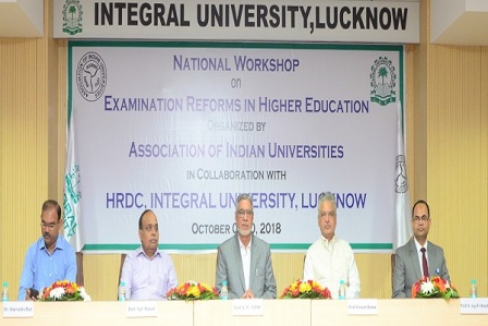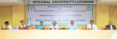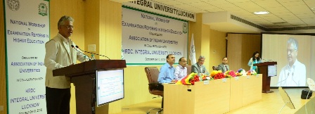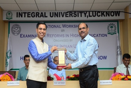 Prof. Furqan Qamar, Secretary general AIU and Chief Guest of the session, admired the University in coming forward to endorse the responsibility of conducting AIU workshop and providing the necessary infrastructure to carry out the event at such a large scale. In his address, Prof. Furqan Qamar said that participants have been attracted in remarkable strength towards Integral University and has just doubled to a voluminous 104 Participants. He appreciated the hard work done by academics and logistics of a higher education system that needs a war-step reform. He invited the participants to actively participate in the workshop and emphasized that we have to “trust the teacher” for assessment, examination, and evaluation. He said, but for that, we have to appoint good teachers as everybody cannot be a teacher. He further added that we have to make the students believe in the experience of the teachers, and the teachers have to value the creativity of the students. He began his talk by highlighting how examinations have evolved over a period of time. From No examinations in Gurukuls and Madarsas to the present concept of rigorous examination, clearly, the focus has totally shifted from imparting knowledge to just examining not worrying whether the student is learning or not. Prof. Qamar recommended the concept of giving autonomy to teachers itself in conducting the examinations as opposed to the idea of having a well-defined controller of examination office; developed countries are already doing this. In logistics, there are so many issues in having crept in as the litigations have become more common, delay in academic sessions, errors in the evaluation of answer scripts, the risk of question paper leaking to name a few. Following academics concept will require the appointment of good quality qualified teachers who can create creativity in students which could only come when young minds of the students combine with the experience and knowledge of the teacher. He encouraged the delegates to share their experiences among themselves and try to frame solutions to the present problems being faced by the examination system. He concluded by defining the quality mandate of UGC i.e shifting from the present system of learning to the outcome-based learning.