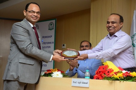 Prof.S. W. Akhtar, Hon'ble Chancellor suggested that the first page of copies should have OMR sheets format which in result create some ease in a smooth evaluation. He said that it is a costly affair and a time-consuming matter. He hoped that the workshop will certainly propose the solutions to the problems. He suggested that the manual feeding of marks into the system and manual coding of answer scripts are time taking and they eventually produce delay in result declaration, instead a title page of the answer scripts should be given in the form of an OMR sheet which can go through scanner via some already developed computer program for the purpose, it would definitely speed up the process of evaluation and result declaration. Various Technical Sessions were held during the National workshop to explore and gauge the contemporary assessment techniques and suggesting reforms to the existing Examination system.