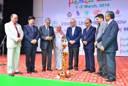 The Valedictory Function of Integral University’s annual festival, FIESTA ’19, was held on March 3, at the main University lawns, winding up the series of glorious events, actively participated and relished by all. Shri Arun Sinha, IAS, Chairman of Uttar Pradesh Subordinate Service Selection Commission, Chief Guest for the Valedictory Function, was gleefully a part of the Function. His words on academic success and overcoming life challenges were applauded by the audience. He compelled the students to follow the same intricacies and fervor in planning their own lives like they have conceptualized Fiesta 2019.