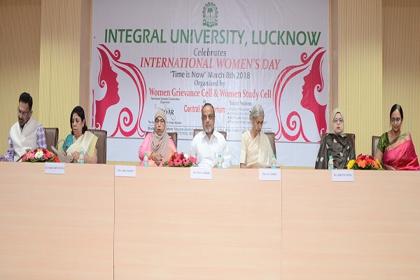 The programme was organised by Women's Grievance Cell and Women's Study Cell. Mrs. Azra Wasim, Director, Techno Academy was the Chief Guest, Prof. M.K.J. Siddiqui, Hon’ble Vice Chancellor (Acting), Integral University, Prof. Rooprekha Verma, Ex-Vice Chancellor, University of Lucknow, Dr. Saroj Srivastava, leading Gynecologist were the Guests of Honour and Dr. Jabeen Fatima, an eminent English Scholar was the invited speaker. Mr. Syed Wasim Ahmad, OSD to Chancellor was also present on the dias. Besides. Directors, Deans, HoDs, faculty members and students were present in the Central Hall.