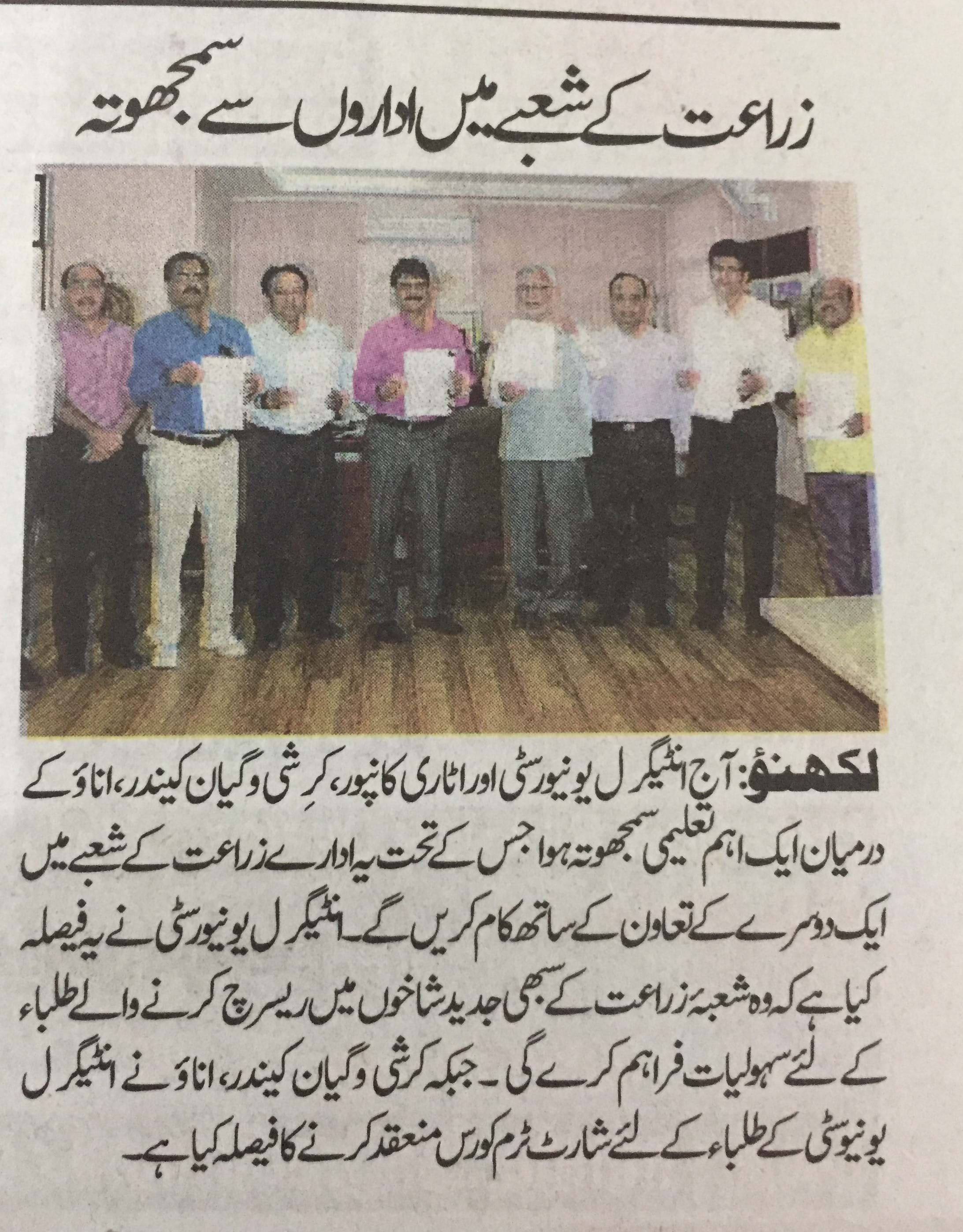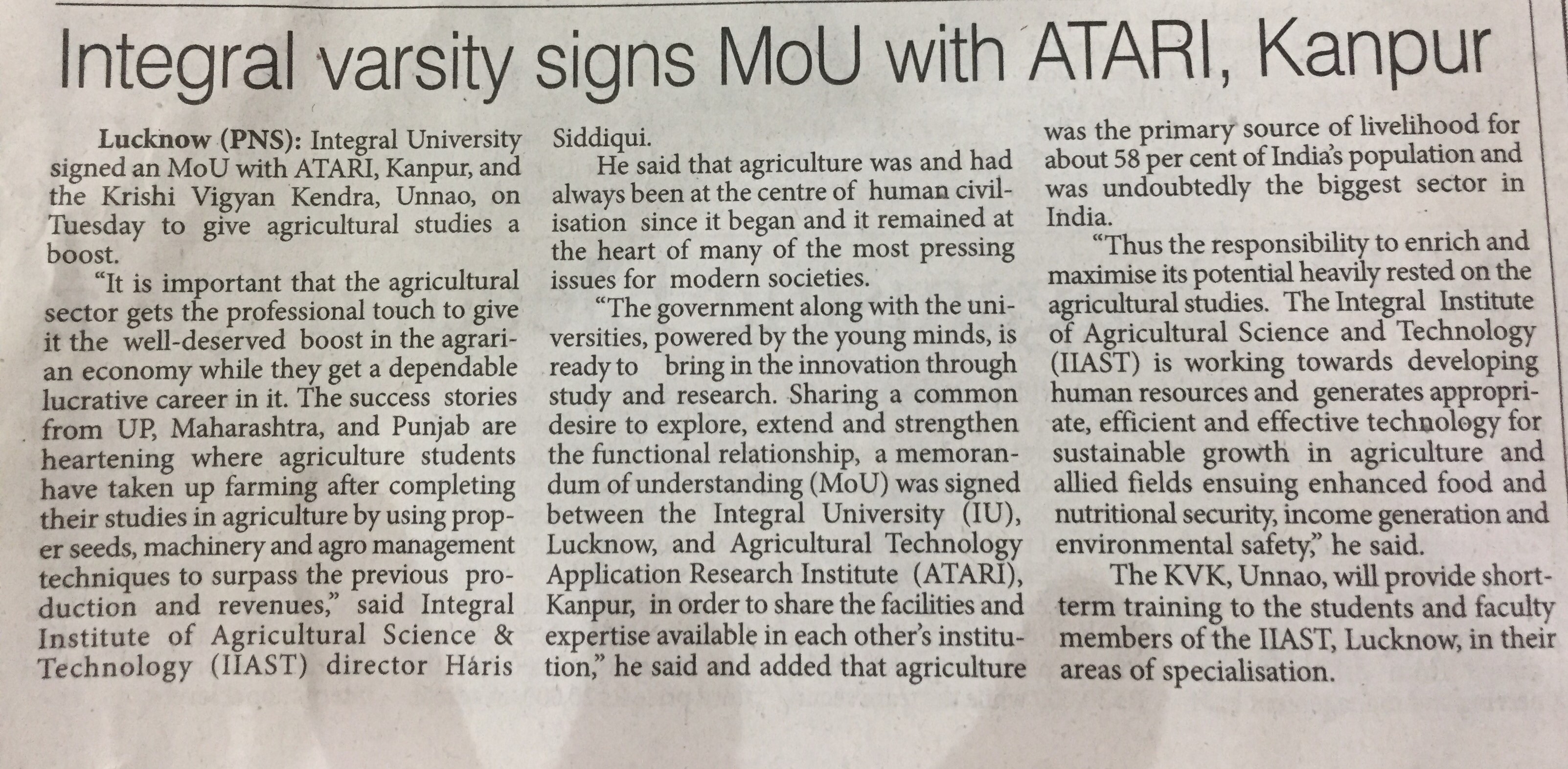 ATARI Agricultural Research Initiatives | Media Coverage | Integral University Lucknow
