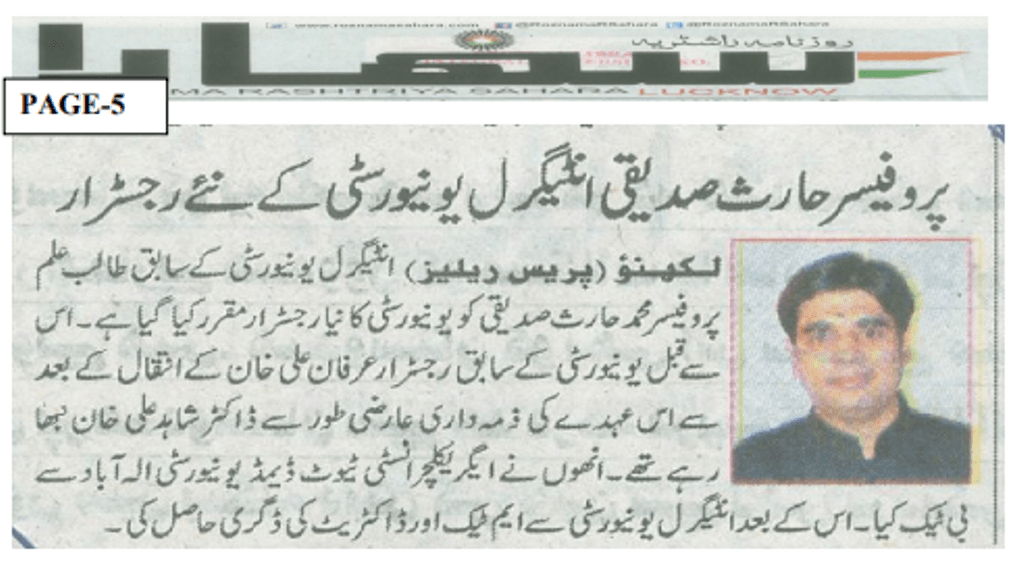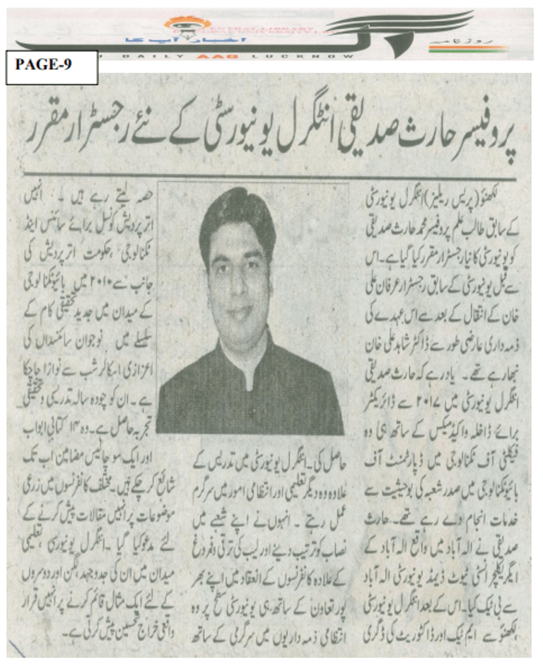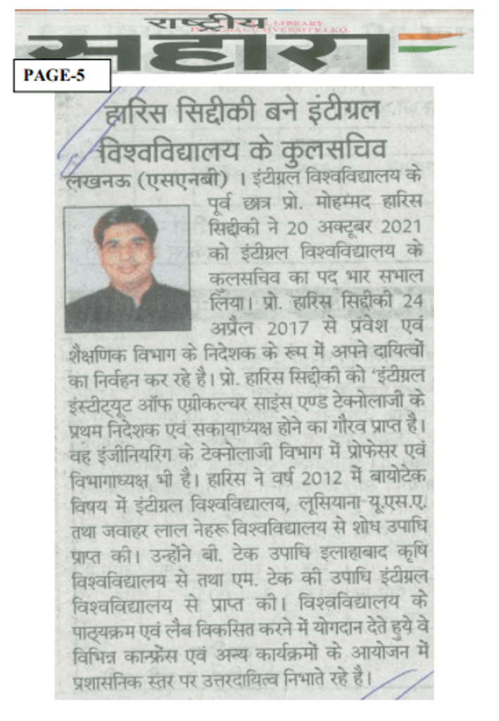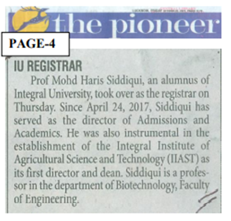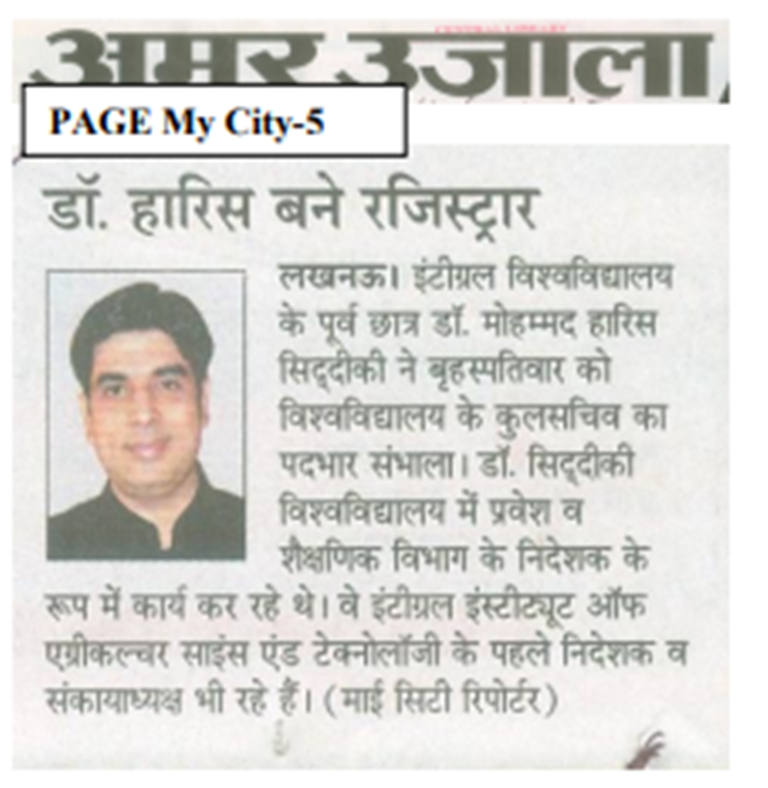 Media Coverage: New Registrar Appointment at Integral University Lucknow