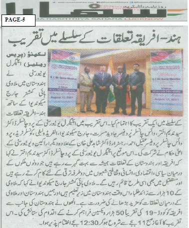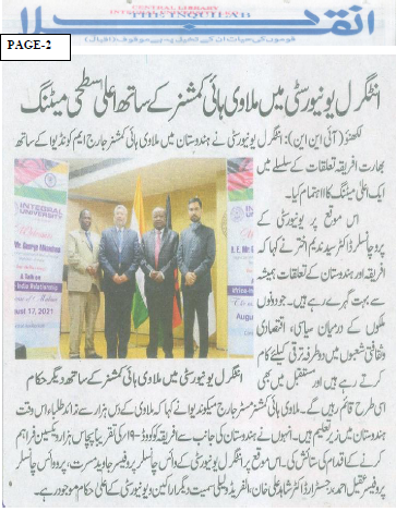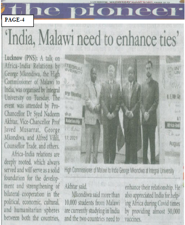 A talk on Africa-India Relations by H.E. Mr. George Mkondiwa, The High Commissioner of Malawi to India was organized by Integral University on 17th August 2021.