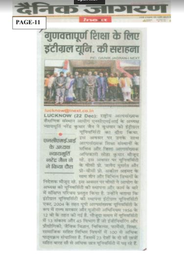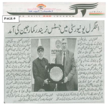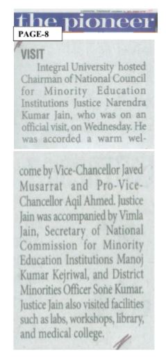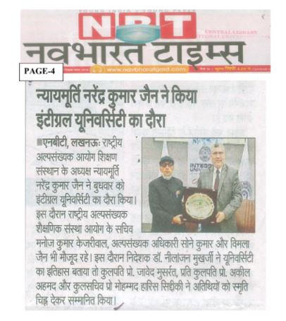 Justice Narendra Kumar Jain, Hon’ble Chairman for National Council for Minority Education Institutions, visited Integral University on 22 December 2021.