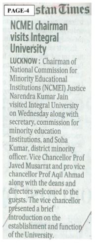 Integral University Lucknow's Recognition by National Council for Minority Education Institutions