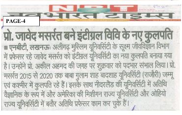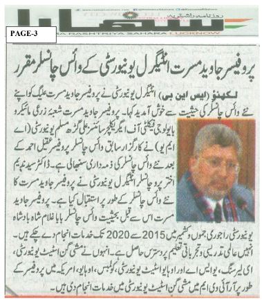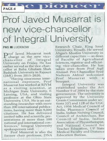 Prof. Javed Mussarat appointed as the New Vice Chancellor of Integral university