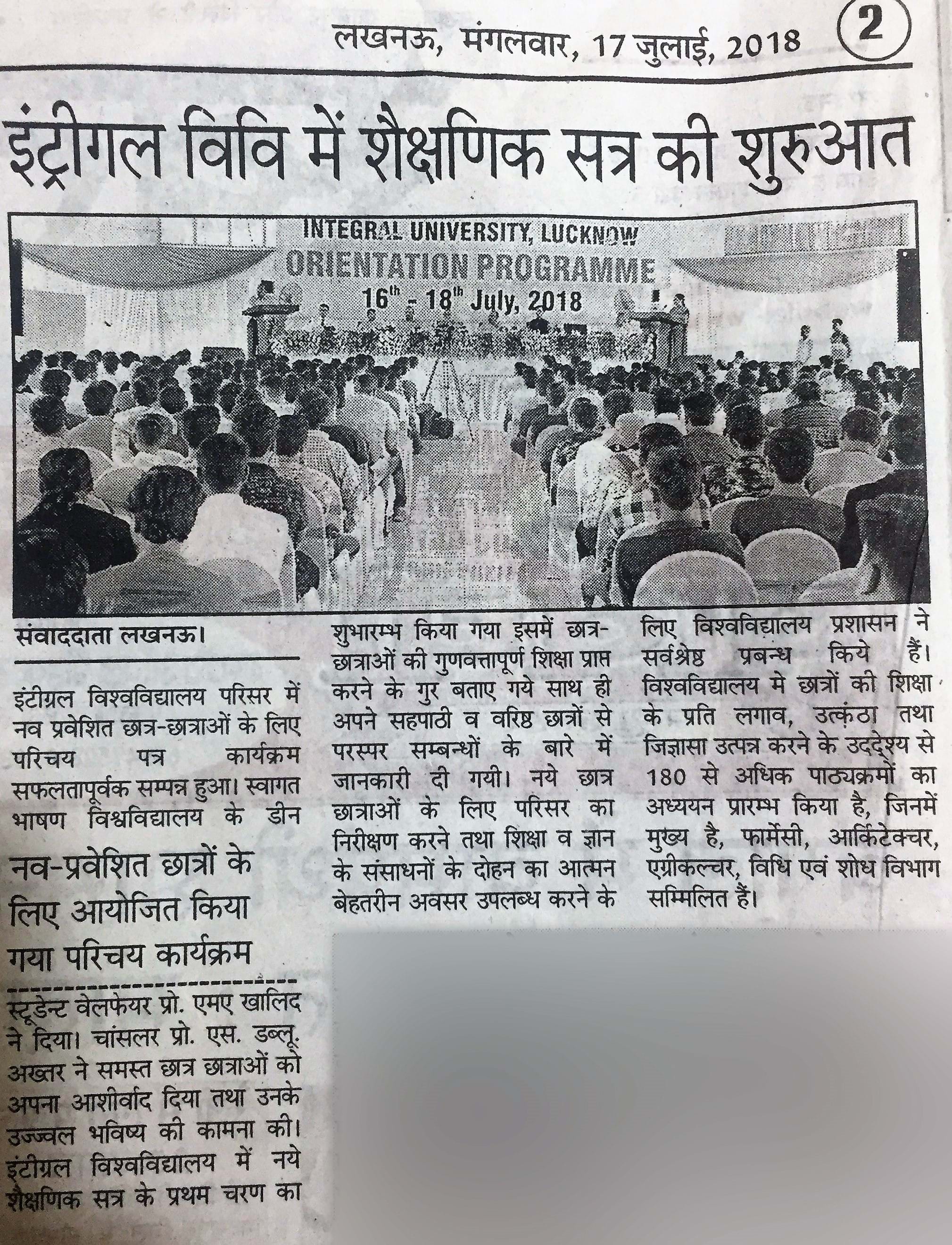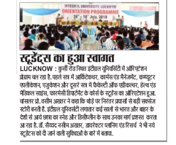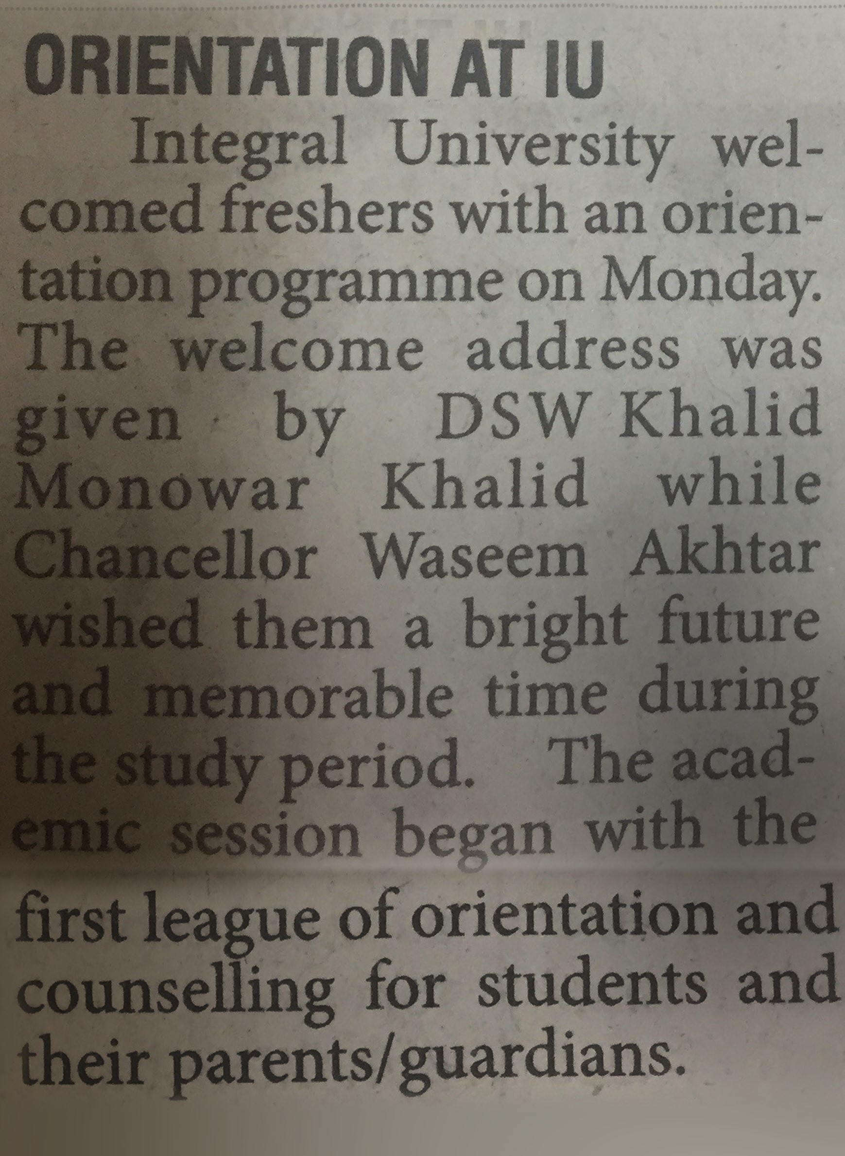 Embracing New Beginnings: Media Coverage of the Orientation Program at Integral University Lucknow