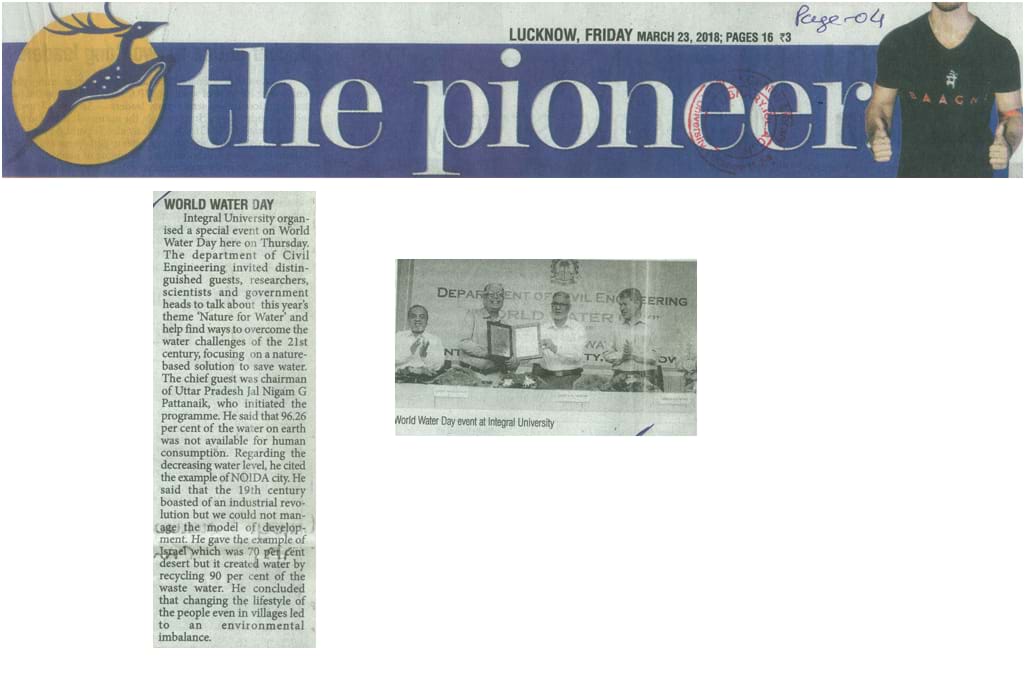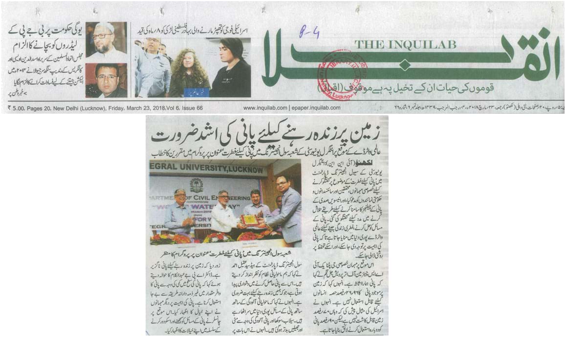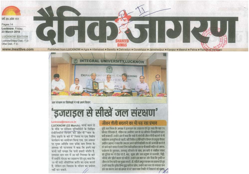 Media Coverage: Integral University's Water Day Initiatives and Environmental Awareness