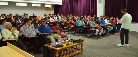 Mr. Abdullah Hassan, CEO & Co Founder, Dhow Capital, Kuwait, the guest of honour enlightened the students present at the auditorium with his provoking thoughts. He said that we need to have an environment which inspire and motivate us to get success in life. “You have time to build your dreams, nothing happens in a day but everything happens daily” he said.