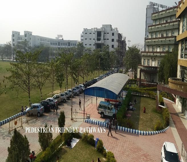 To comply with the policy and to sensitize the university employee and students, proactive measures are taken and due efforts are put from time to time. To name a few such efforts- restricting automobile entries in the campus, promoting battery-powered vehicles and bicycles on campus pathways, discouraging the use of plastic/poly-bags in canteens and cafeterias, encouraging plantation resulting in beautiful landscaping in the university, and establishing pedestrian-friendly pathways.